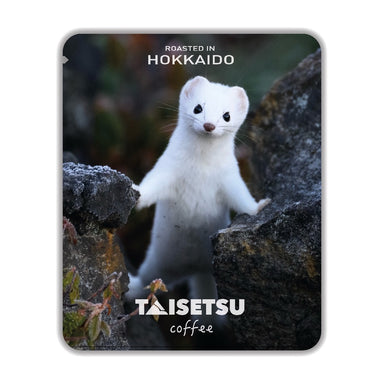 真っ白なエゾオコジョに出会うために山に毎年通いました。撮影するまでに十年かかりました。ようやく会えたね!と微笑んでくれたような気がしました。真っ白な妖精は神々しかった! TAISETSU COFFEEの代表とも言える人気のフォトシリーズ。 北海道の風景や動物の写真が鮮やかにプリントされ、ま...