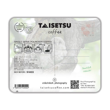 エゾフクロウの雛達が、 樹洞の中から顔を出した。 森の賢者が巣立つ日も近い。 TAISETSU COFFEEの代表とも言える人気のフォトシリーズ。 北海道の風景や動物の写真が鮮やかにプリントされ、まるでポストカードのようなパッケージです。 中身の自家焙煎コーヒーは、香り高く誰でも飲み...